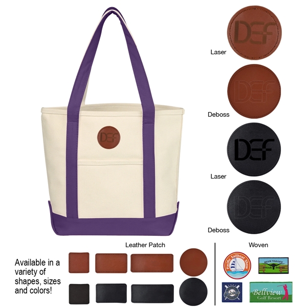 This compact but sturdy cotton canvas tote offers exterior storage pocket and 22-inch carry straps. At roughly 15 by 12 by 5 inches, this 24-ounce cotton canvas carrier is ideally suited for travel necessities or everyday shopping trips. Available with multiple accent trim options. Apply your custom logo imprint to this natural-finish bag and extend your brand visibility! Care: spot clean and air dry recommended.